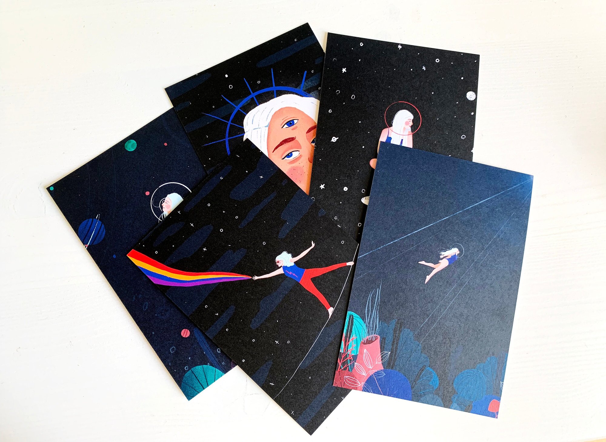 Set of 5 postcards - Mini Art prints.