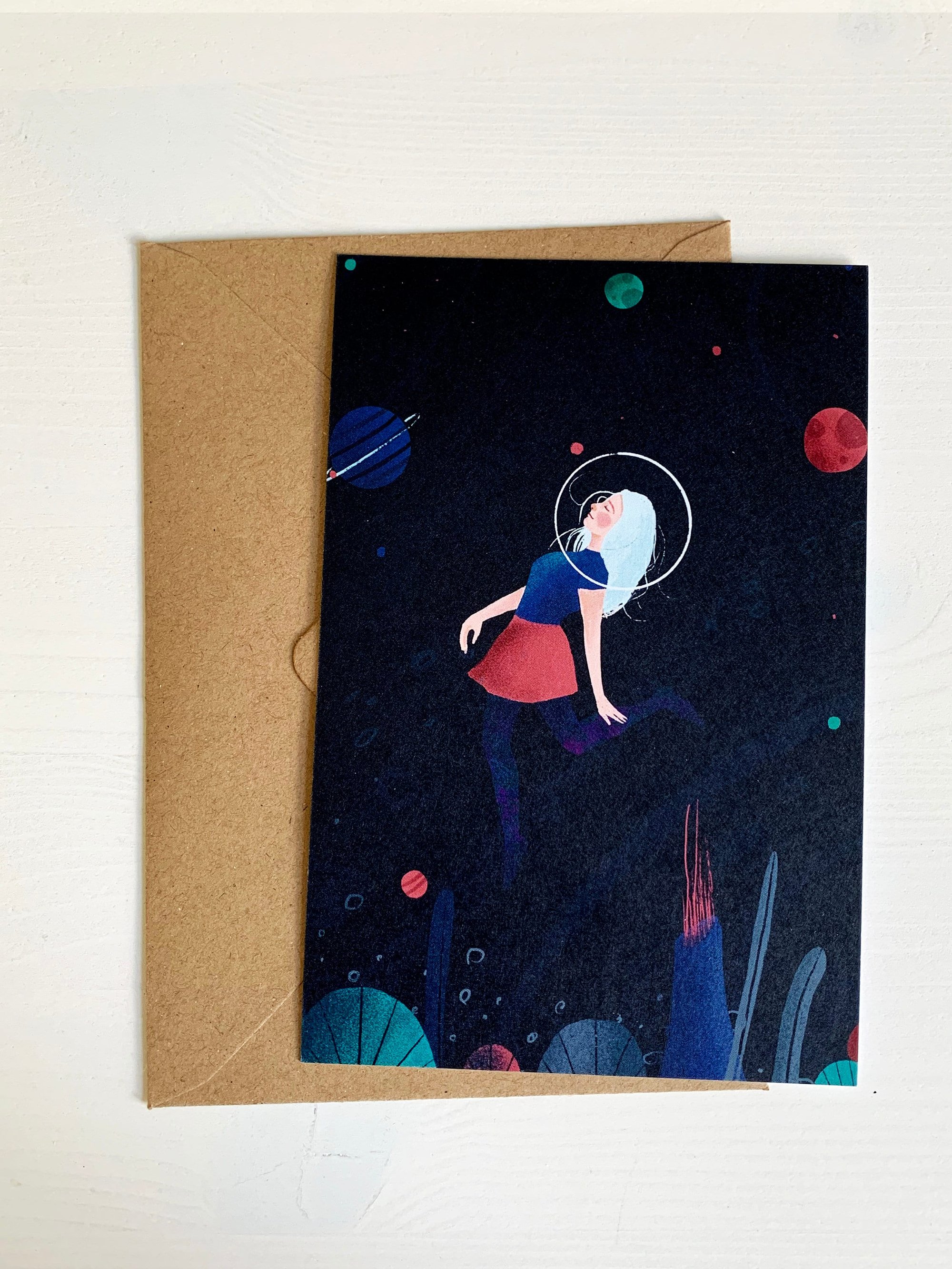 -The back is printed with the name of the artwork, stamp placeholder and lines to write something nice to the recipient :)